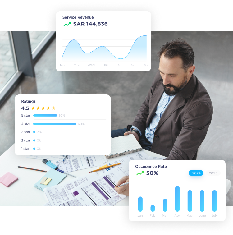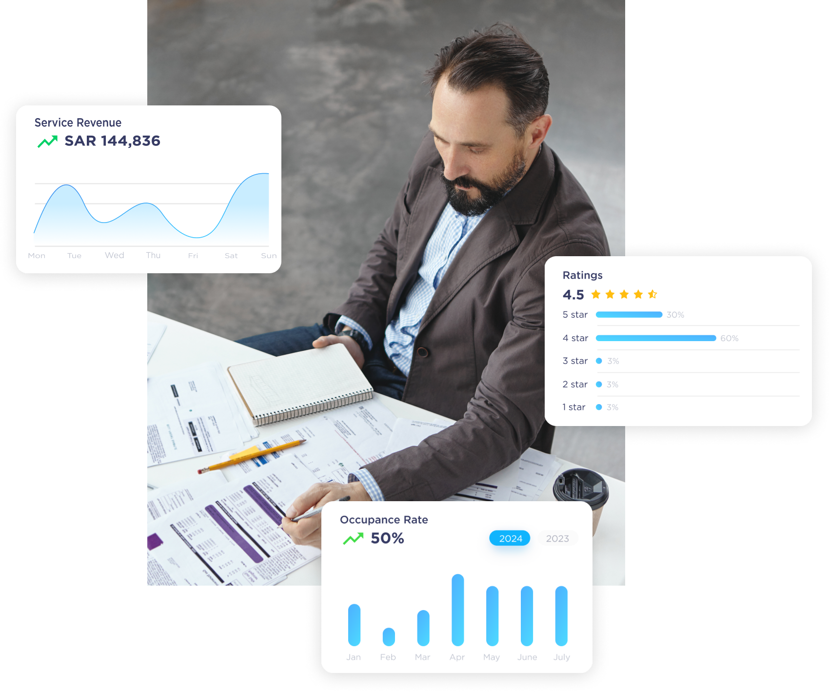 Access valuable insights into guest preferences and service performance to make informed decisions and improve operations.